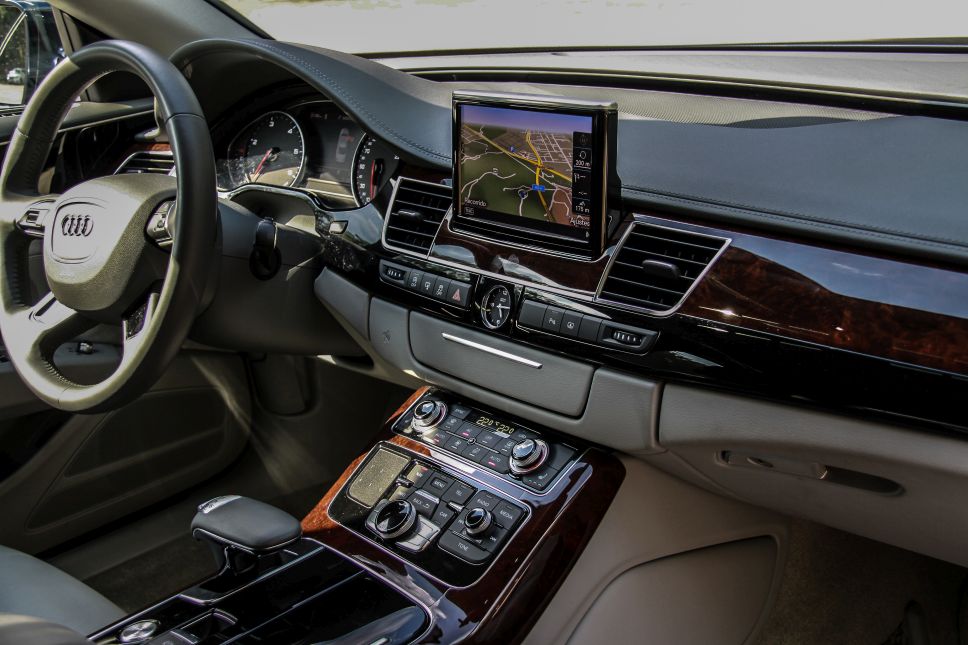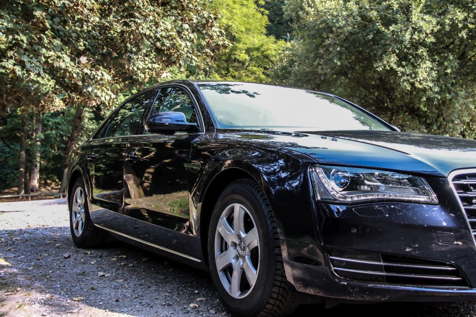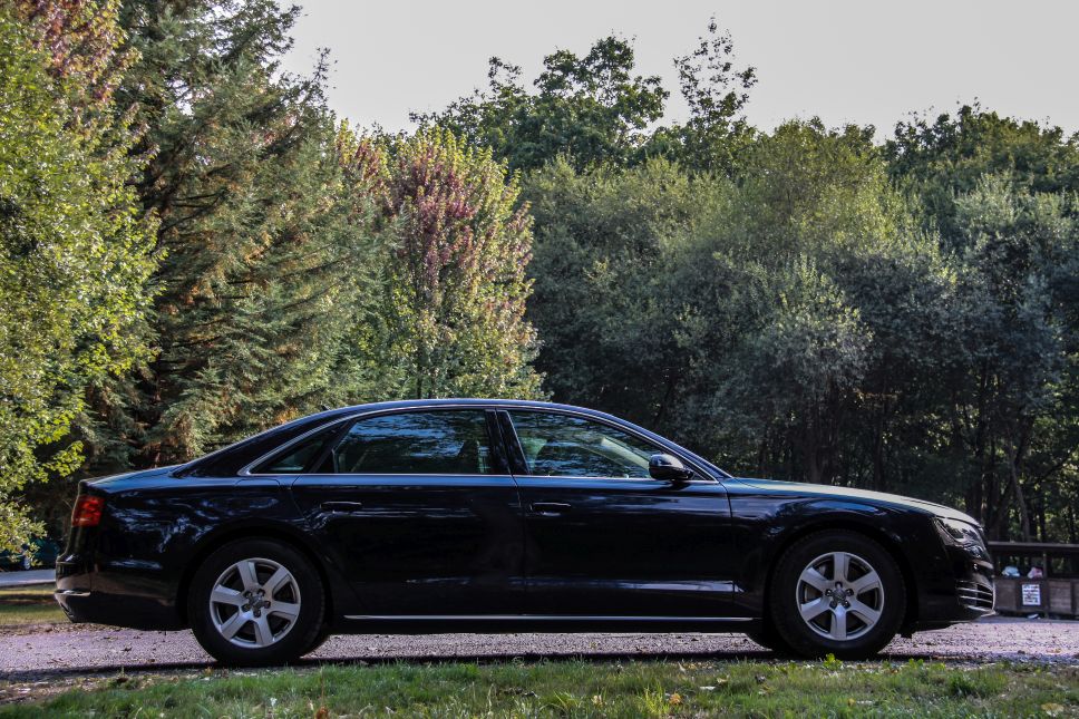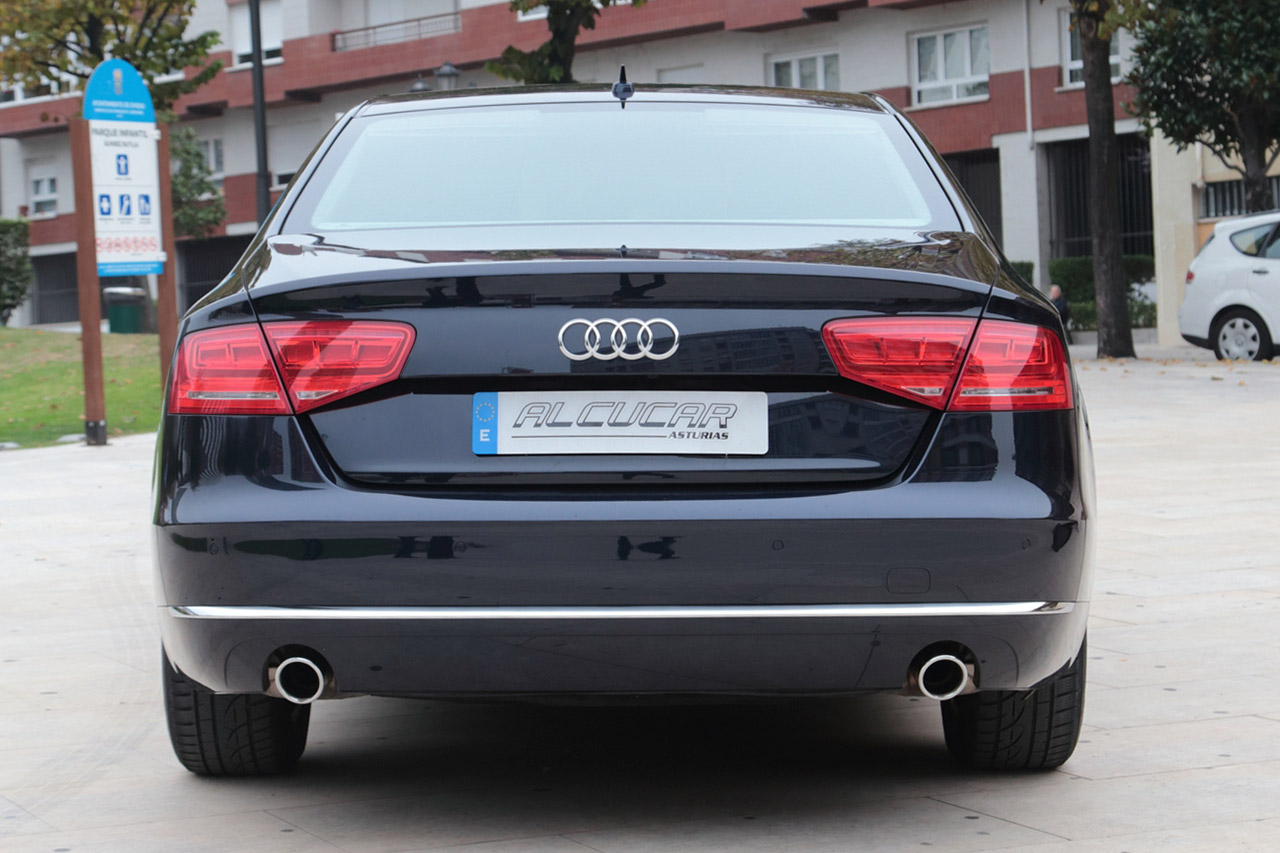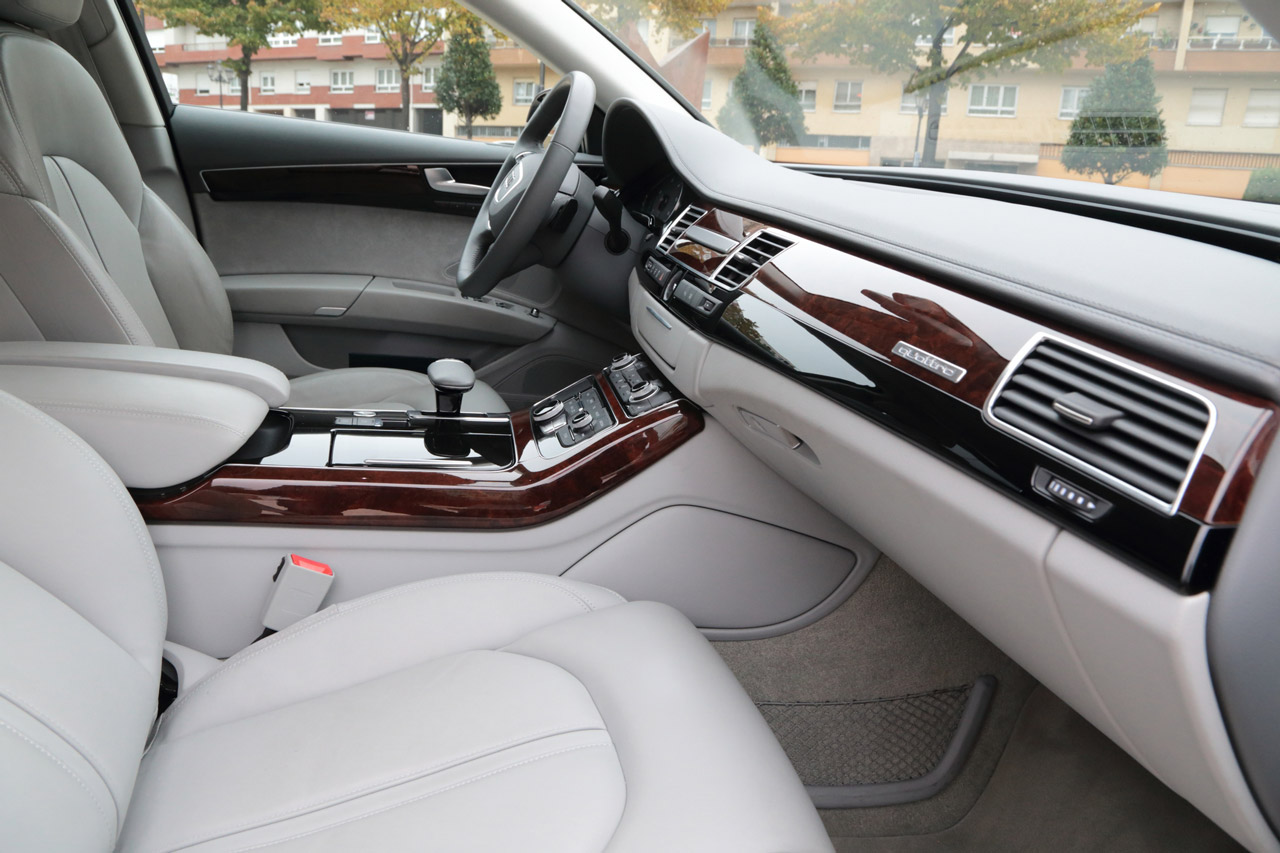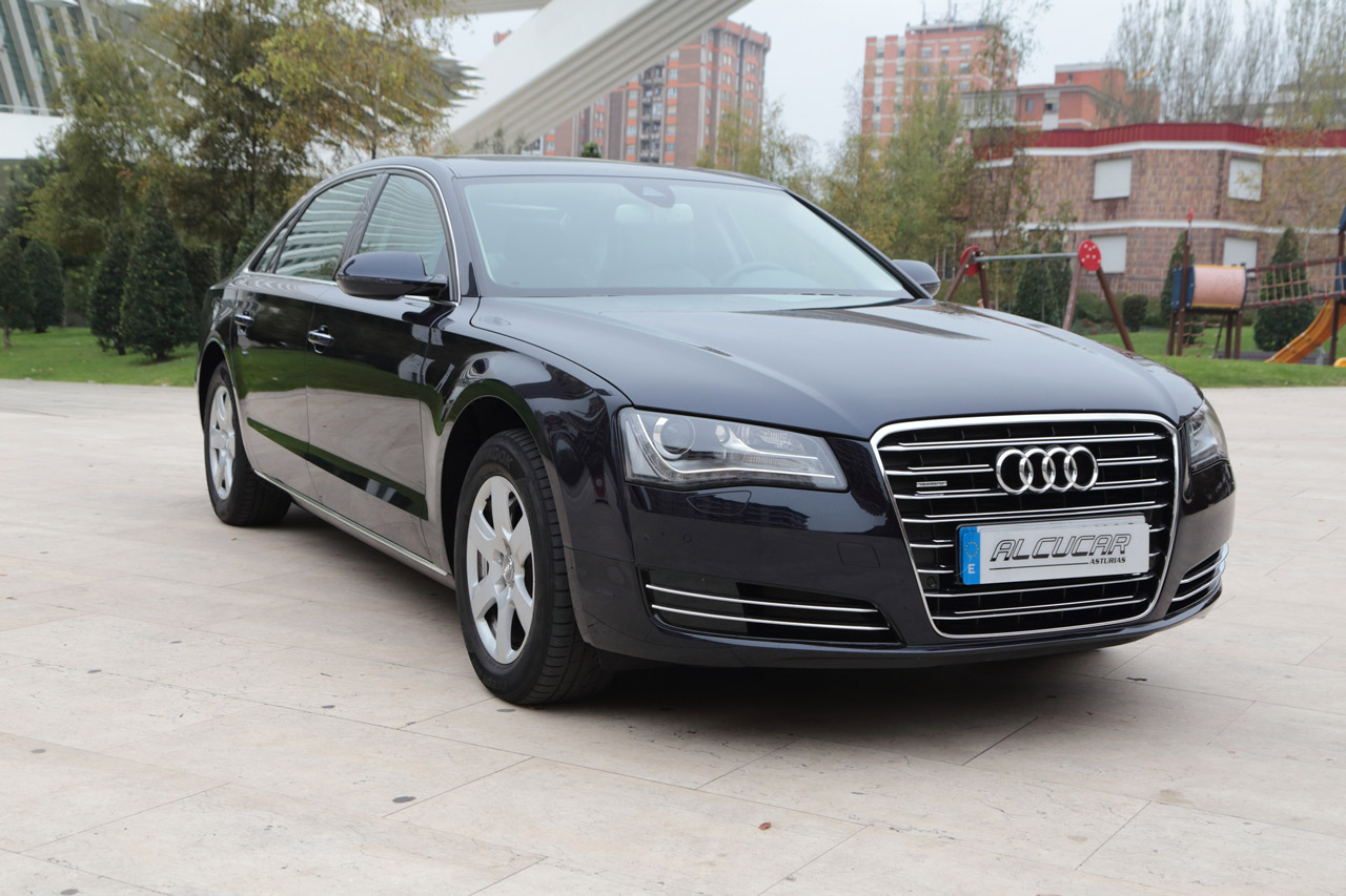 La berlina Audi A8, es considerada el «buque insignia» de la firma de los cuatro aros. Su carrocería de marcadas líneas es fabricada en aluminio, y en su interior, de gran calidad, predomina el lujo combinado con toques deportivos.