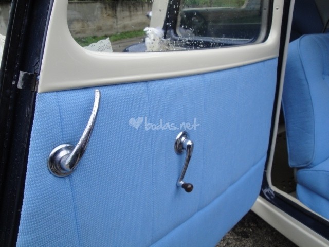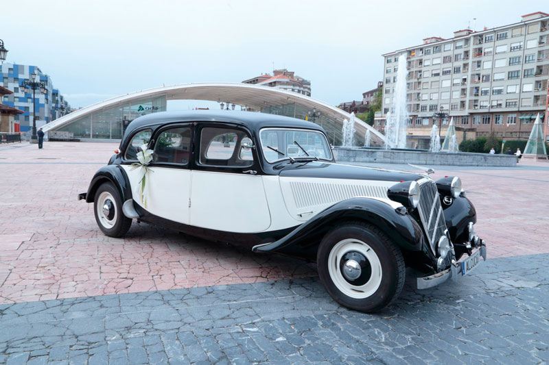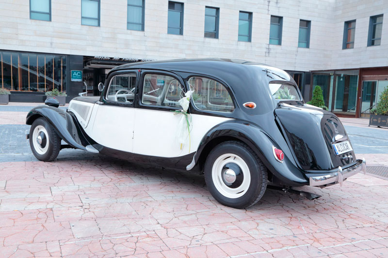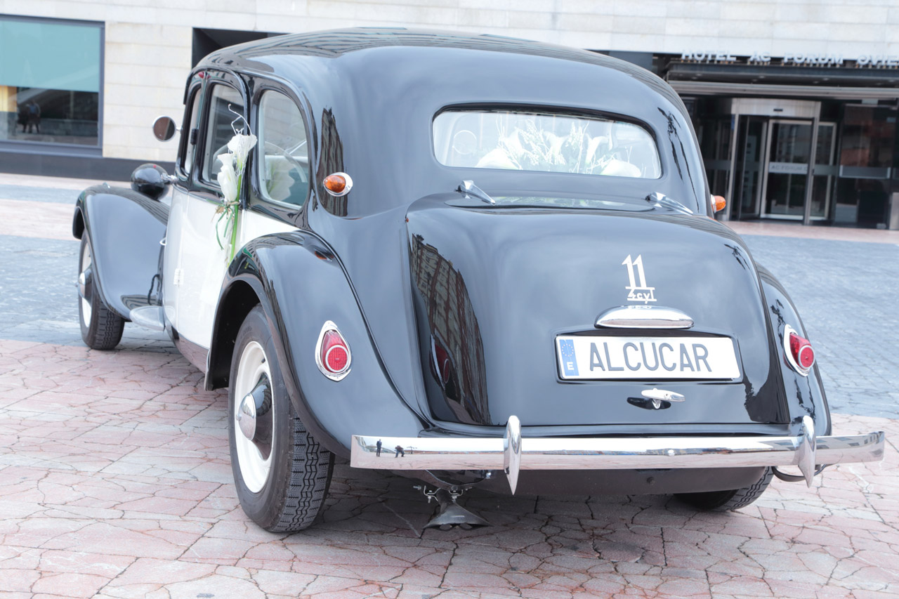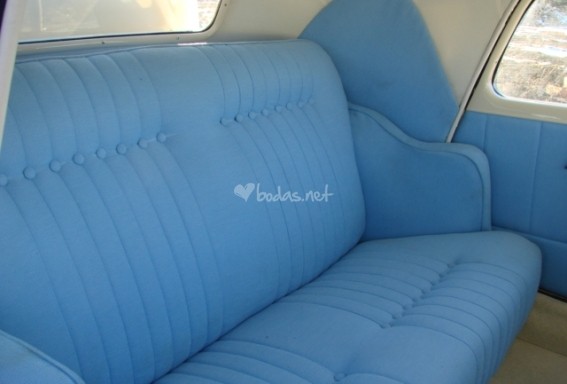 Nuestro vehículo data de 1955 y es la versión familiar, la más larga y espaciosa. Es bicolor en blanco crema y negro.