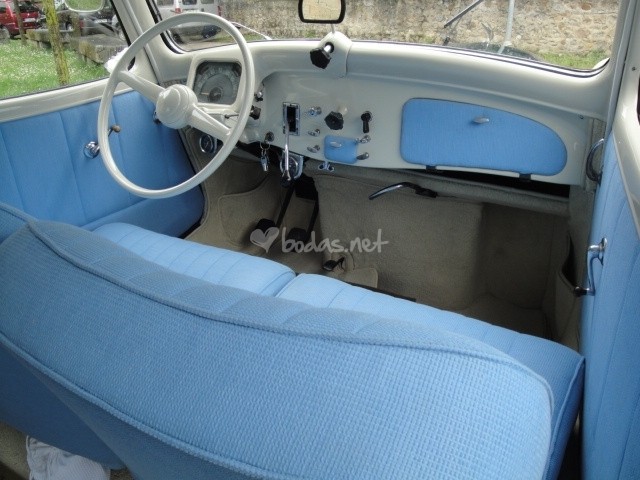 Nuestro vehículo data de 1949 y se encuentra en un excelente estado. Ha sido completamente restaurado. Desmontada toda la carrocería, dispone de pintura bicolor nueva azul y beige, Se han sustituido gomas, conexiones eléctricas y el motor se ha reconstruido por completo. Se trata de la mecánica modelo 11D de camisas más potente y fiable. El interior se ha renovado completamente con pintura del salpicadero y marcos interiores, tapizado de guarnecidos, techo, asientos y enmoquetado con telas de máxima calidad también en combinaciones azul y beige.